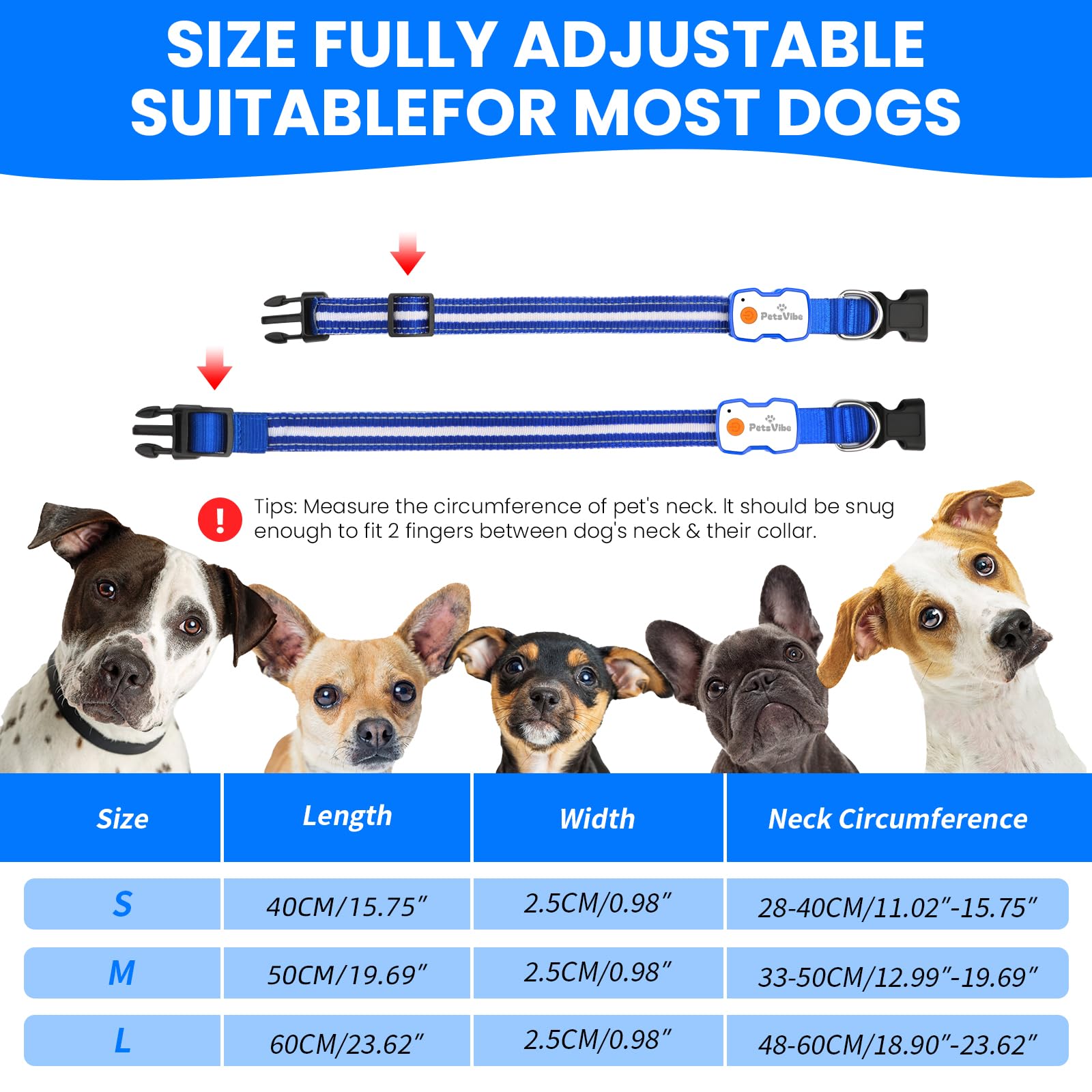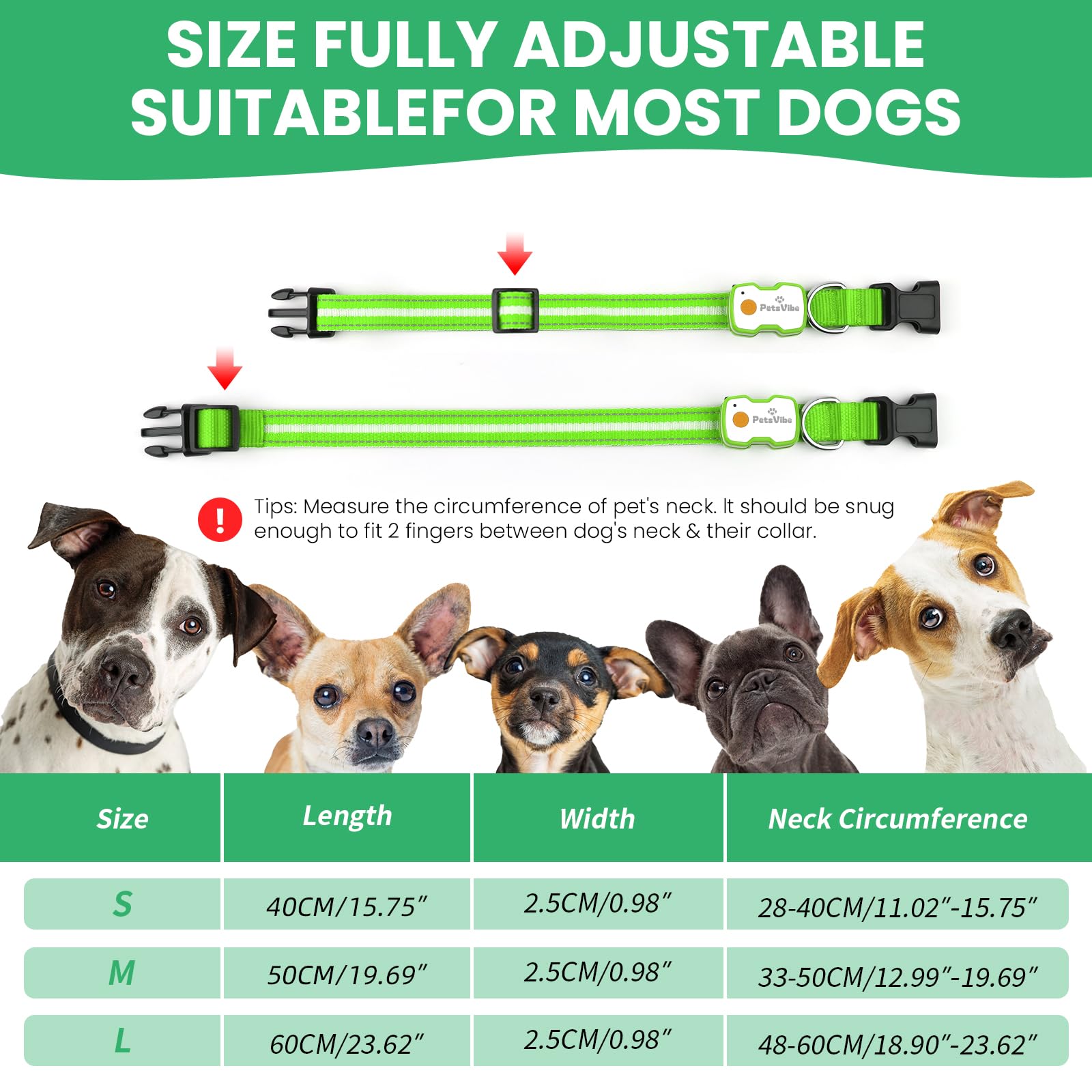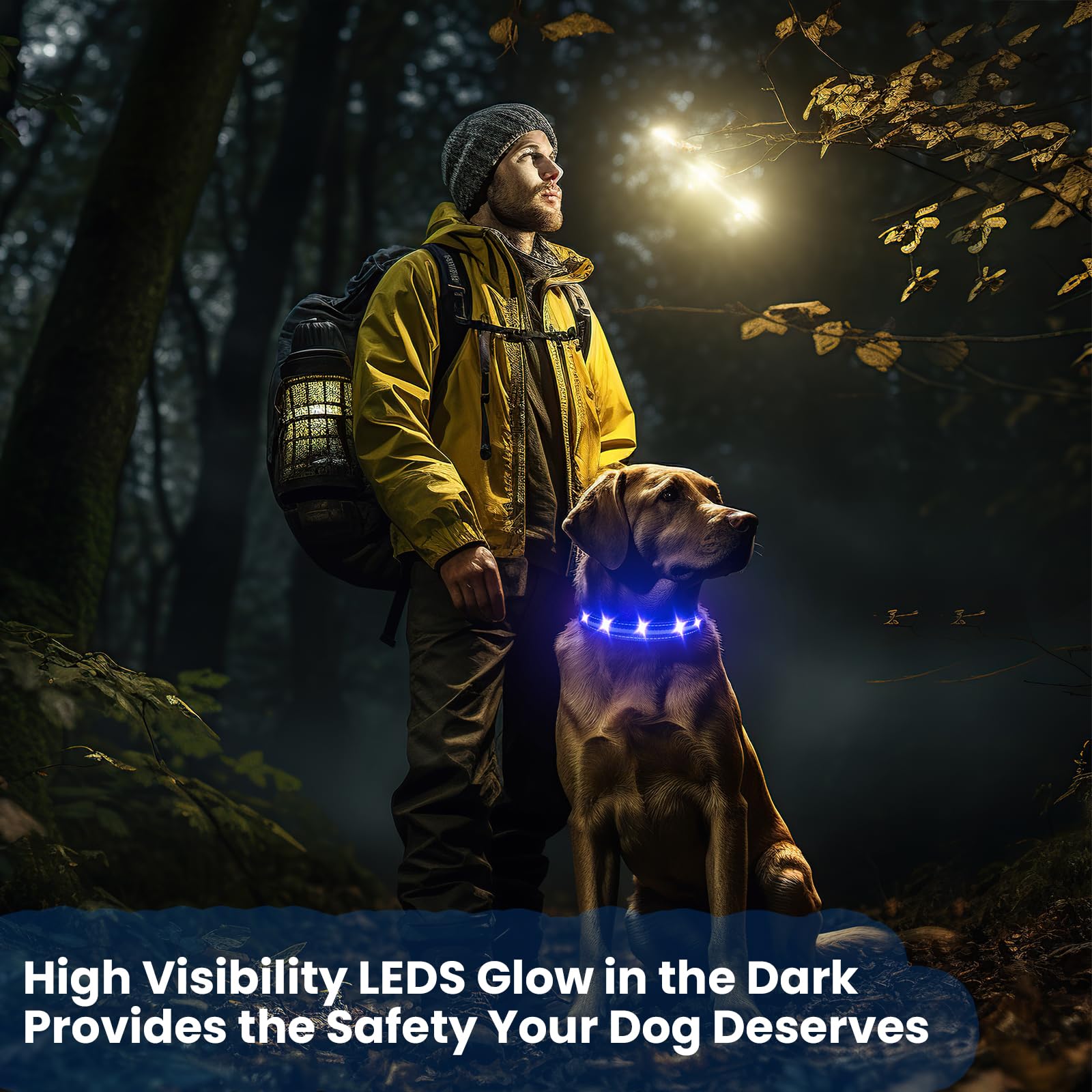 - Adjustable LED lights dog collar designed for enhanced visibility and safety during night walks or outdoor activities.