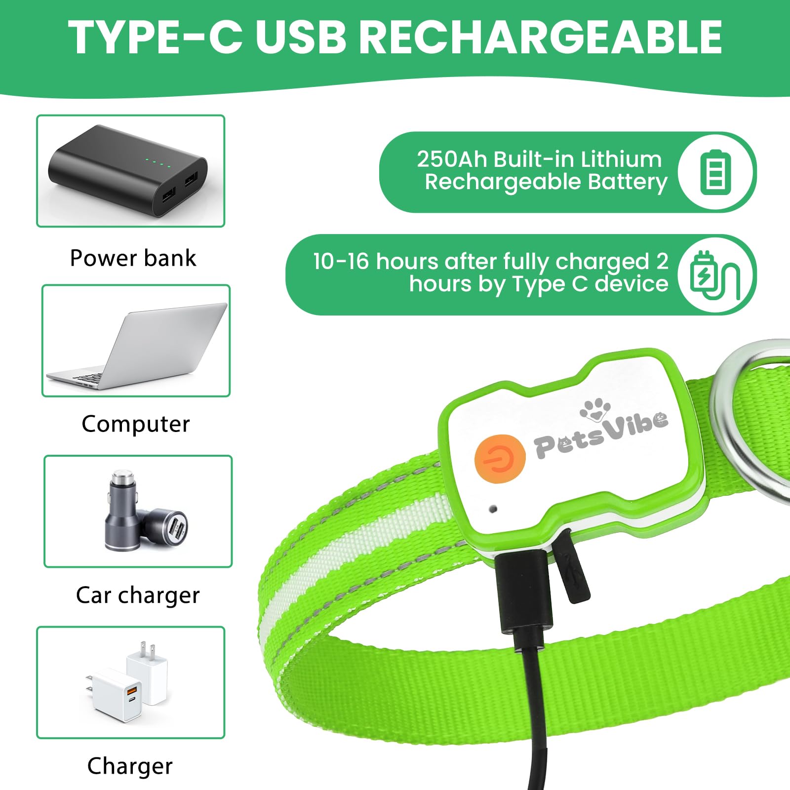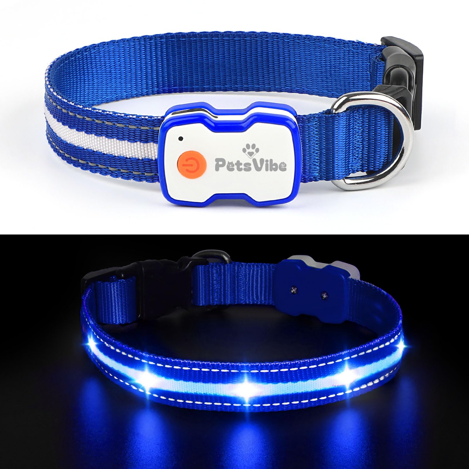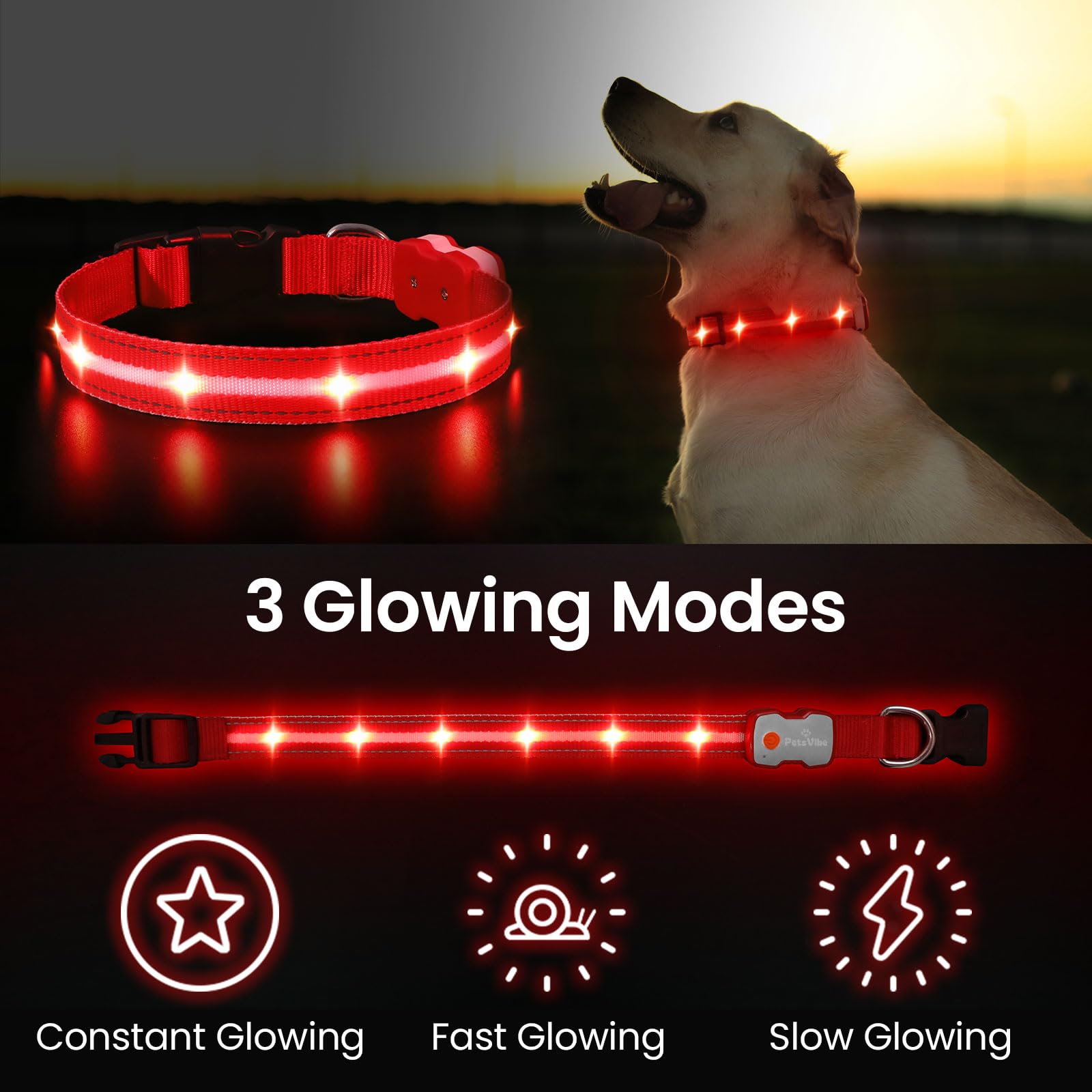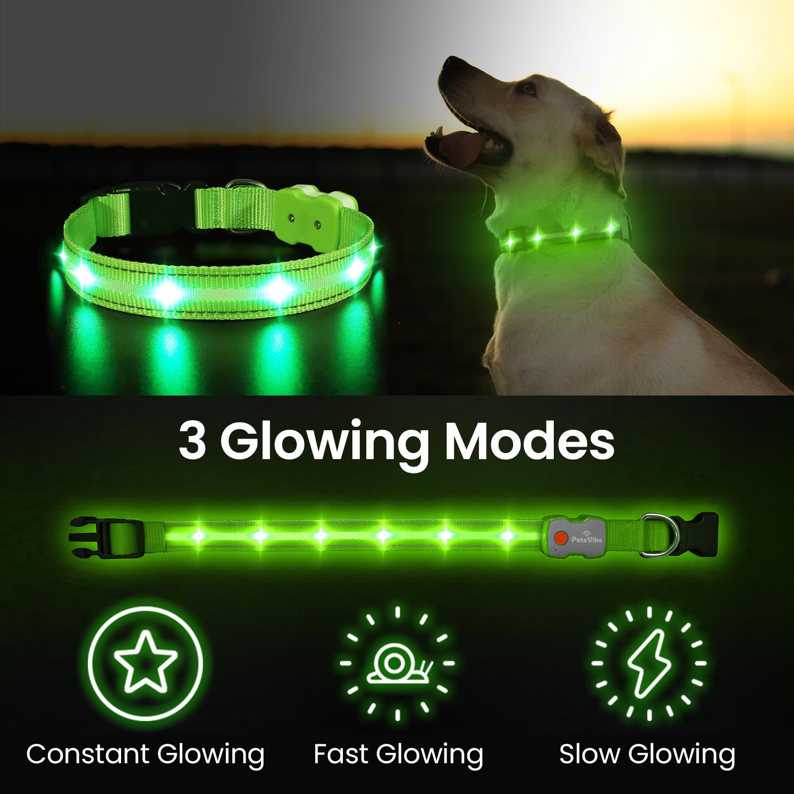 PetsVibe Illuminated Collar for Dogs. USB Rechargeable LED Flashing Dog Collar - Durable, High-Visibility, Eco-Friendly for Safe Night Walks