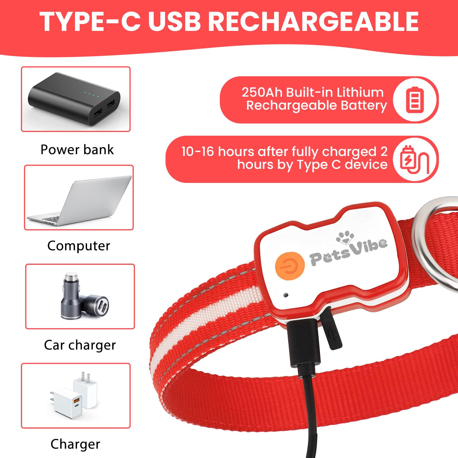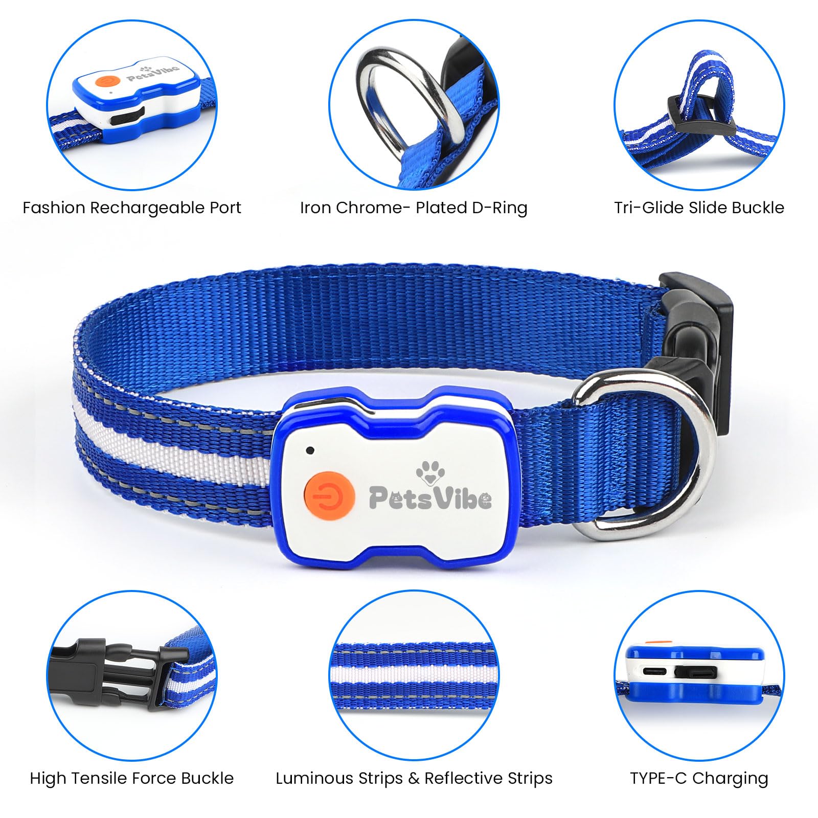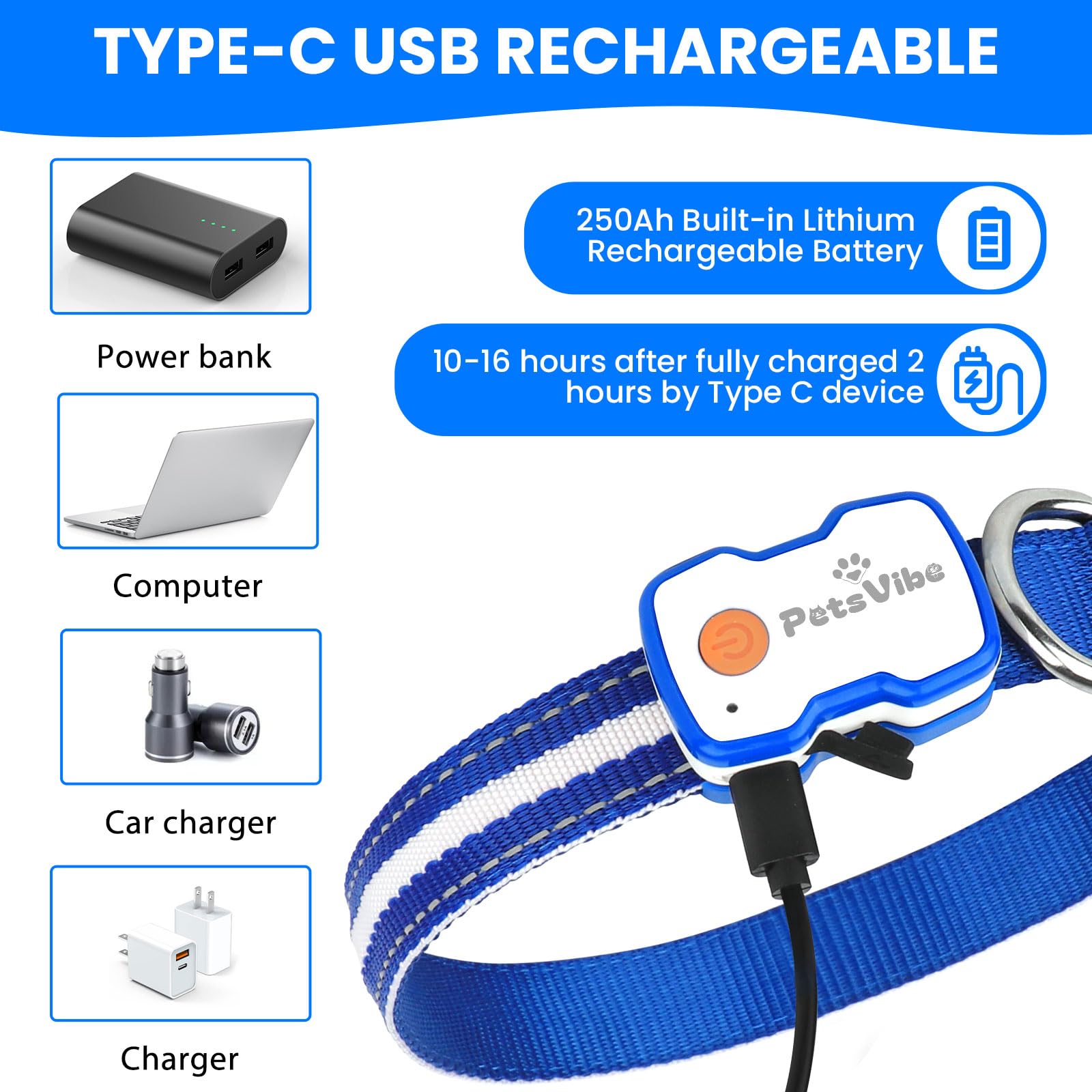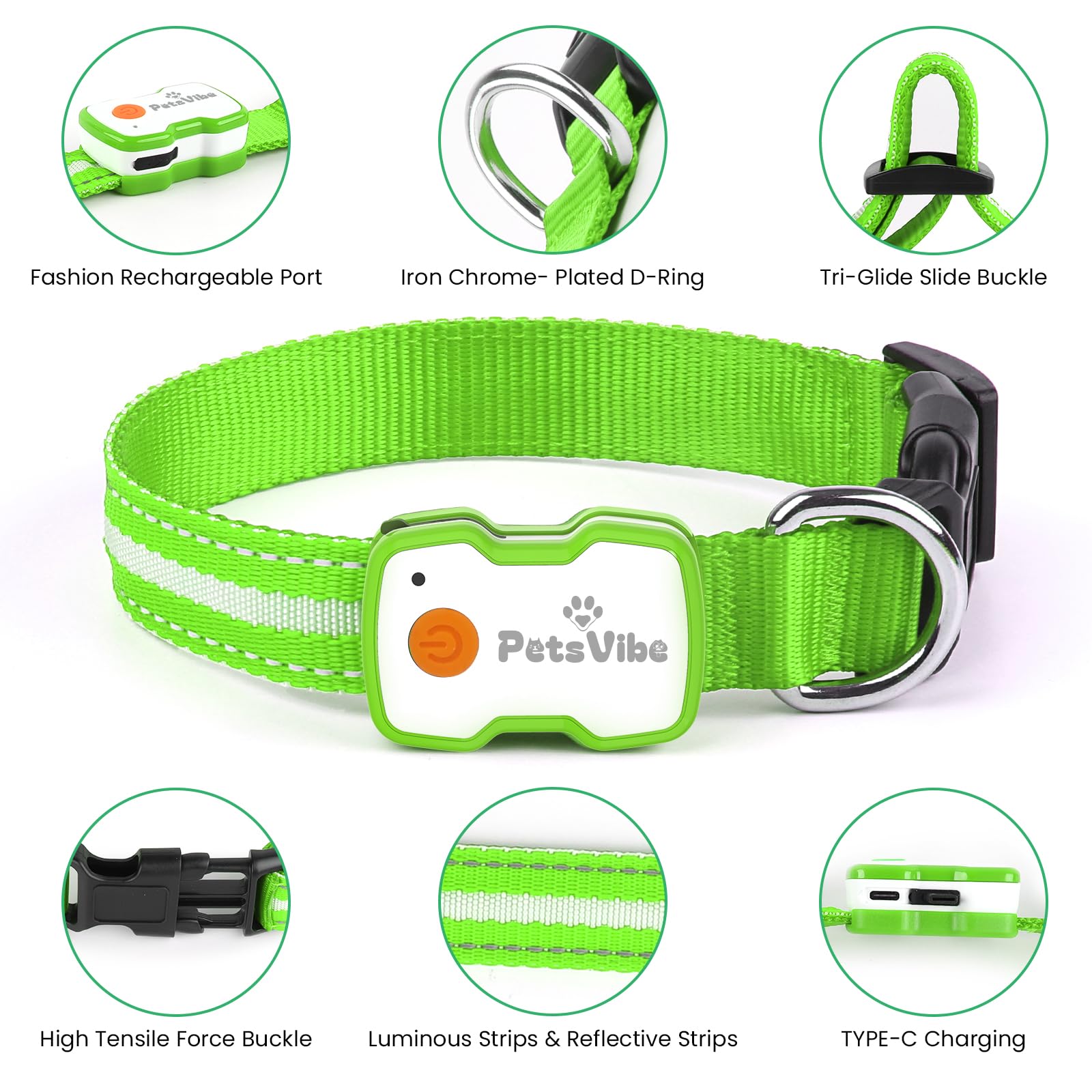 PetsVibe Illuminated Collar for Dogs. USB Rechargeable LED Flashing Dog Collar - Durable, High-Visibility, Eco-Friendly for Safe Night Walks